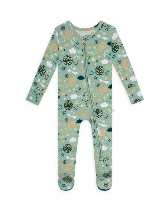 Crafted of a soft viscose blend, this long-sleeved footie features a space-inspired To The Stars print with metallic accents.